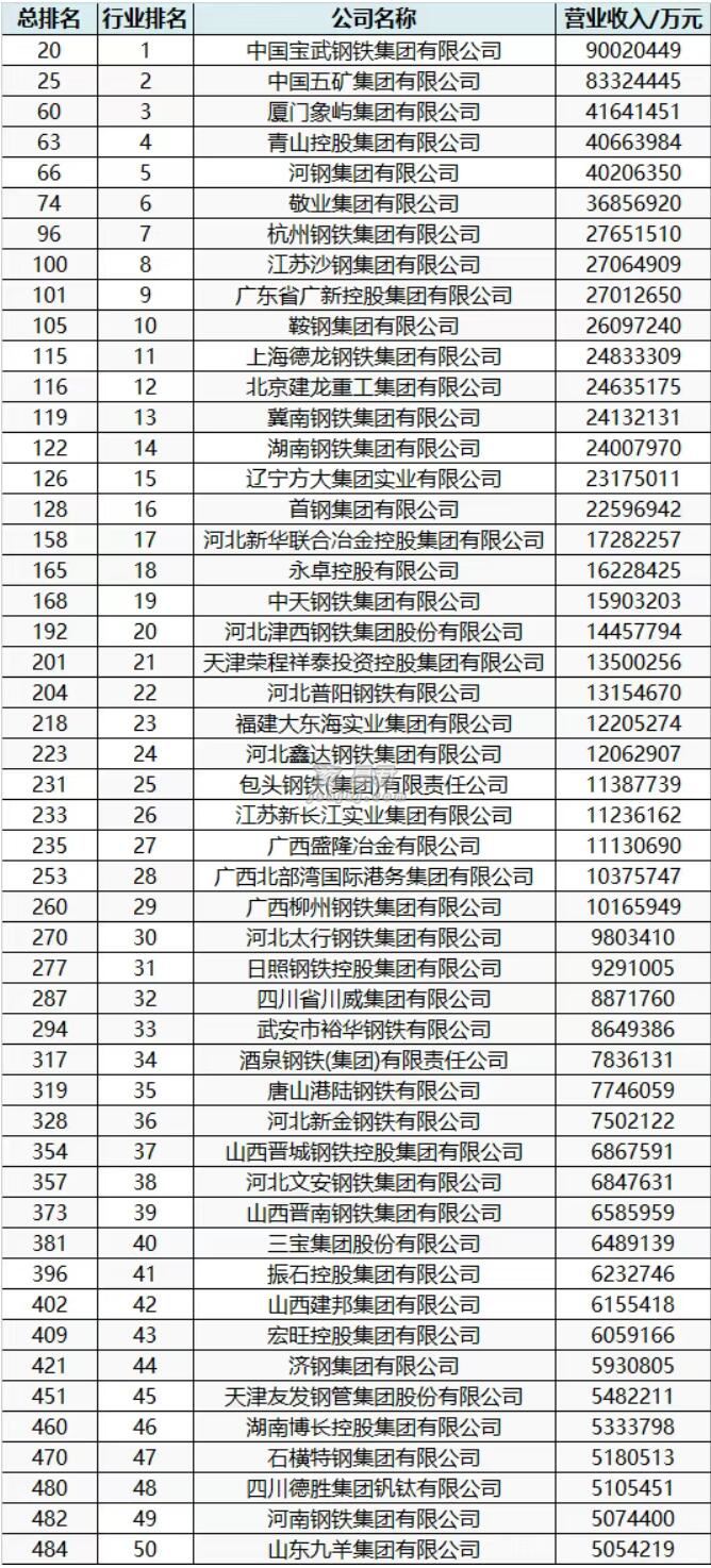 50家鋼企上榜2025中國企業(yè)500強!